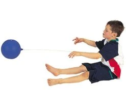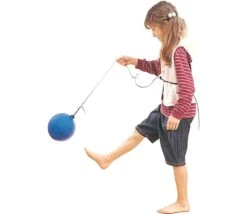 Ballon rond de 20 cm avec corde d’attache à mettre à la taille. Entraînez vous à lancer le ballon et apprendre à mieux shooter et dribbler. Ballon de foot de 20 cm de diamètre. Taille ajustable au joueur (enfant ou adulte) mais charge maximale 100 kg.
