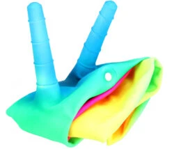 Ballon sauteur arc-en-ciel de 50 cm de diamètre avec 2 poignets de 10 cm.