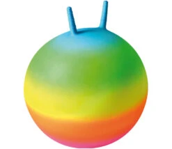 Ballon sauteur arc-en-ciel avec 2 poignets pour sauter et s’amuser.
