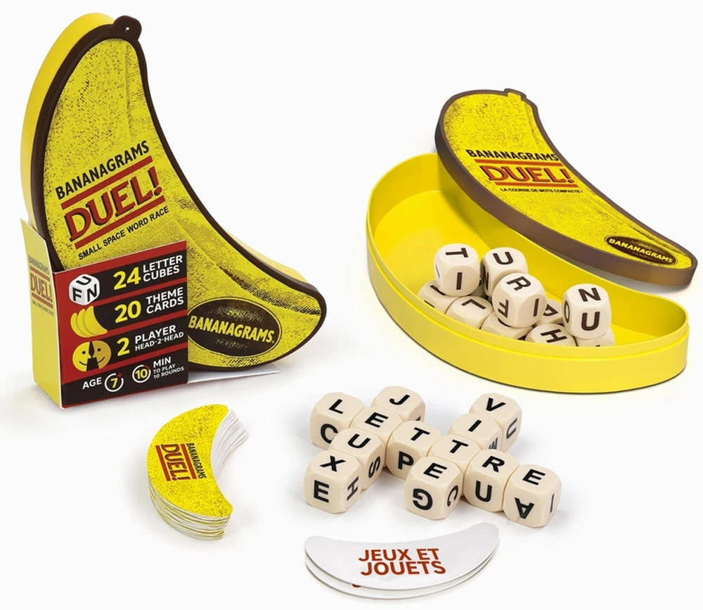 Bananagrams Duel petit jeu de société avec des lettres pour 2 joueurs ou en équipe de 2.