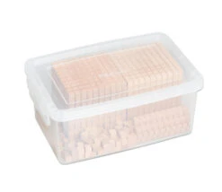 - 1 boite de rangement en plastique transparent rigide (26 x 18 x 12 cm) pouvant contenir l’ensemble des pièces.