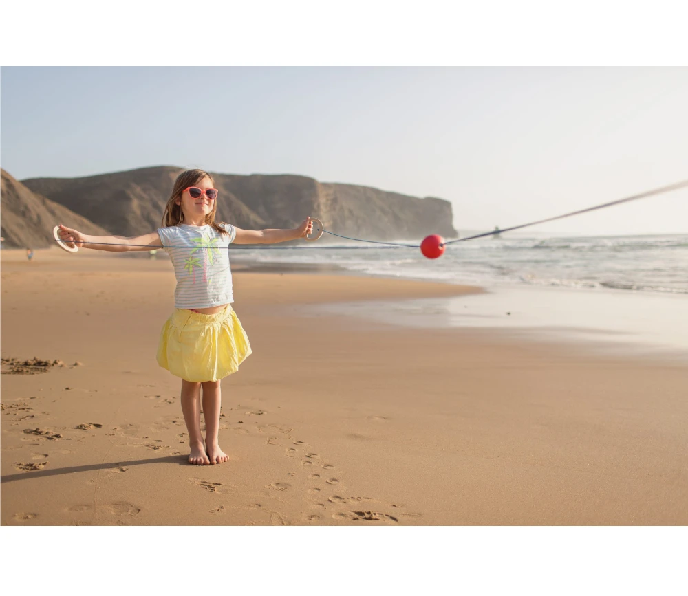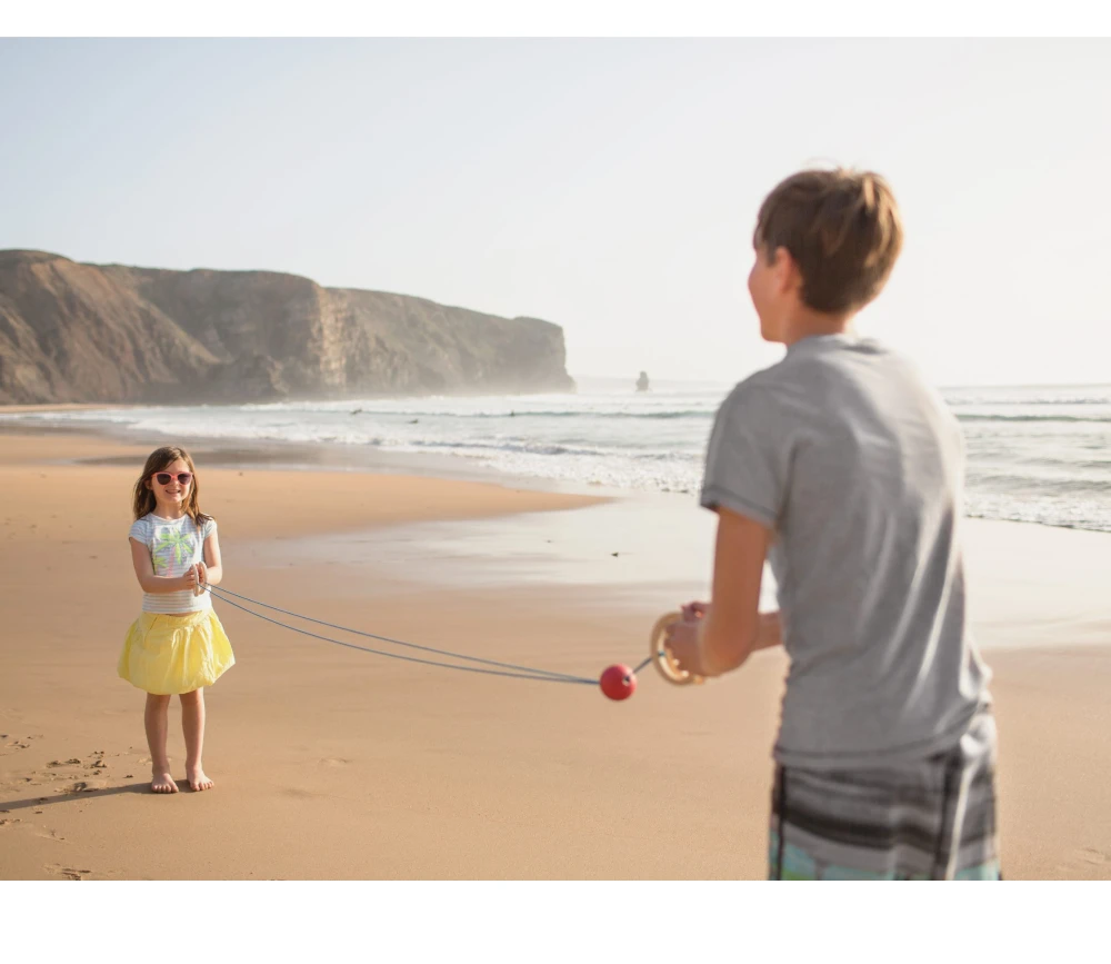 Il fait travailler les bras tout en s’amusant en renvoyant la balle à son partenaire sans risque de la perdre ou de l’envoyer à l’autre bout de la cour !