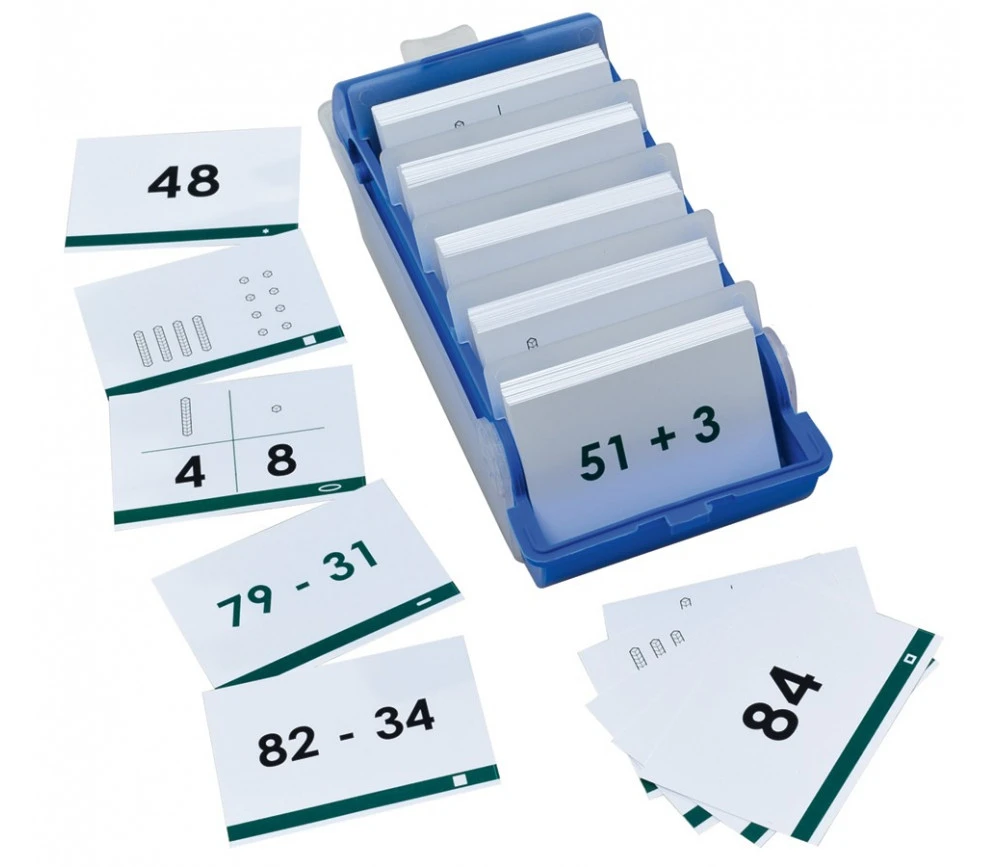 Boite avec 140 cartes de calcul qui vous permettront de faire de nombreuses manipulations avec les enfants en mathématiques. Matériel scolaire.