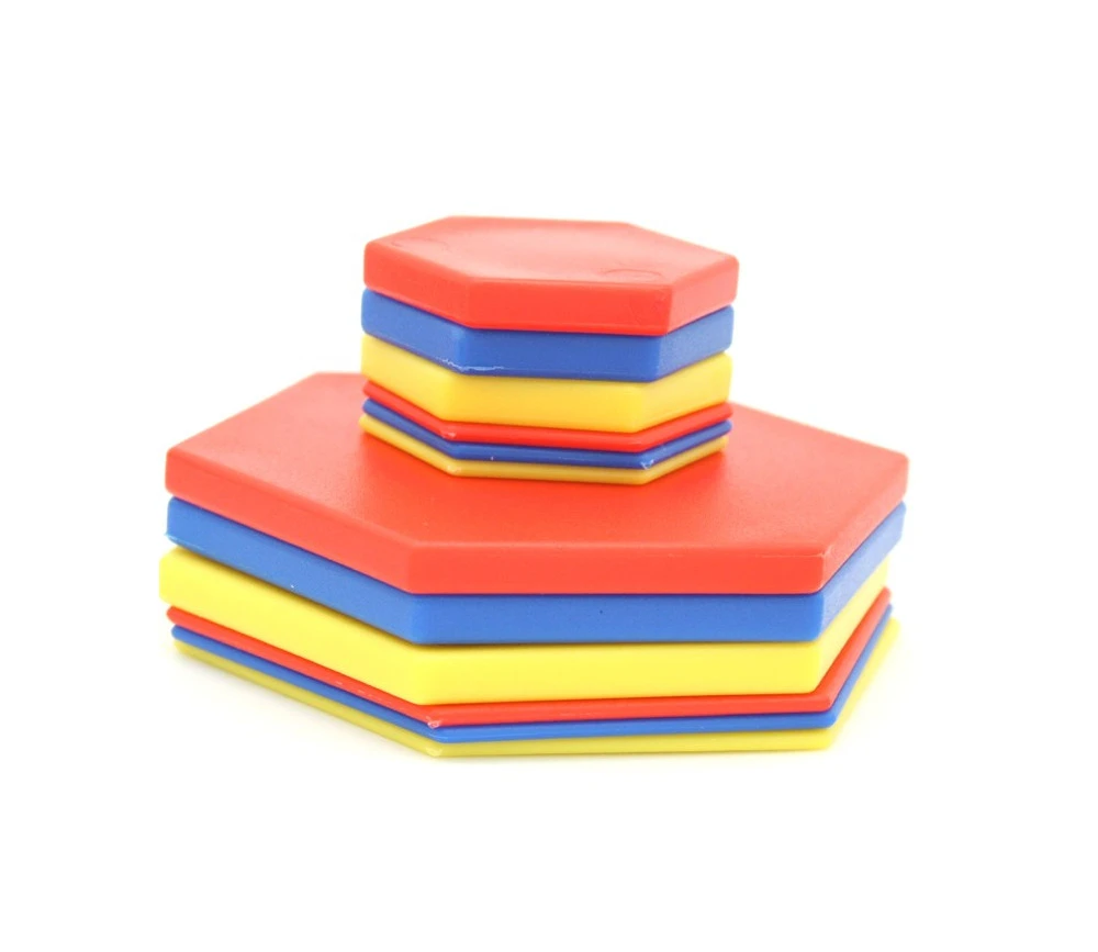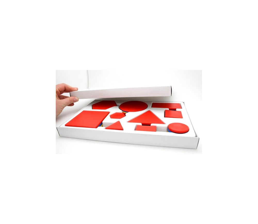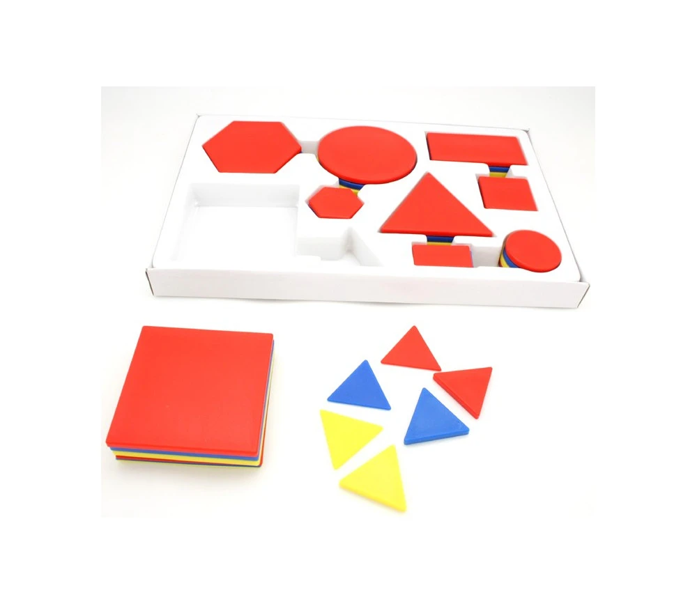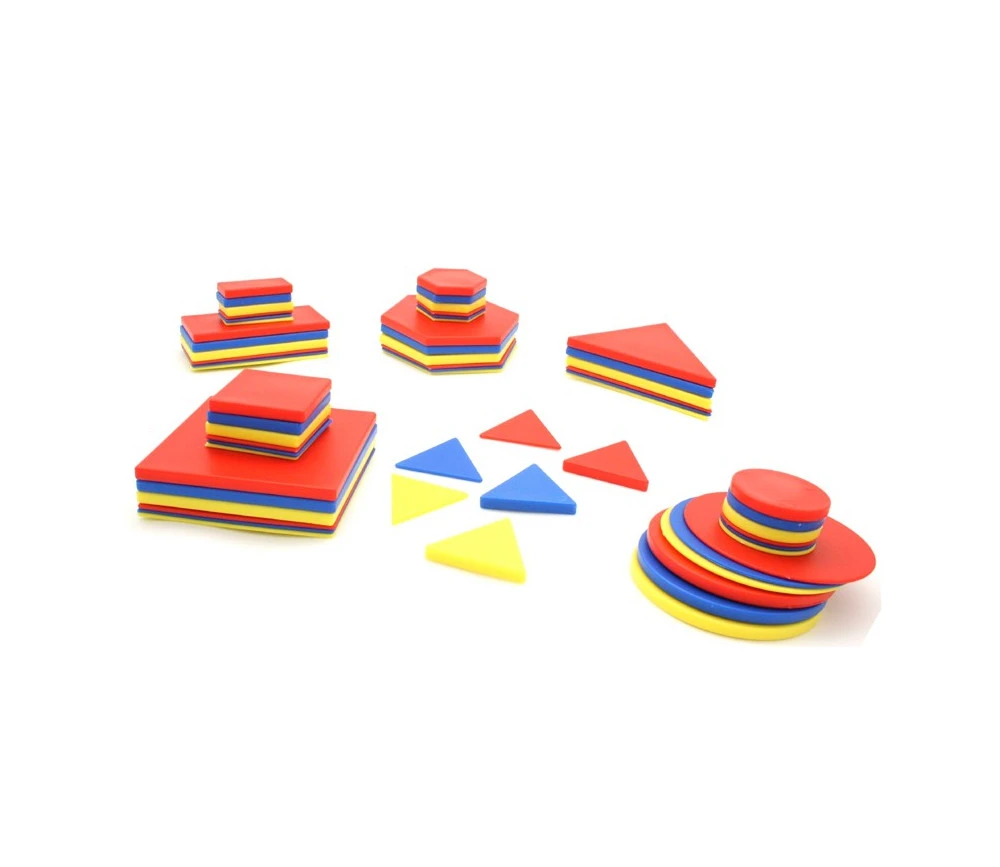 Formes géométriques en plastique pour jeu épaisseur, couleurs et formes.