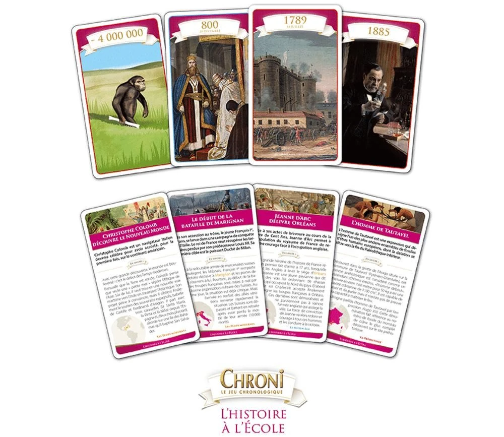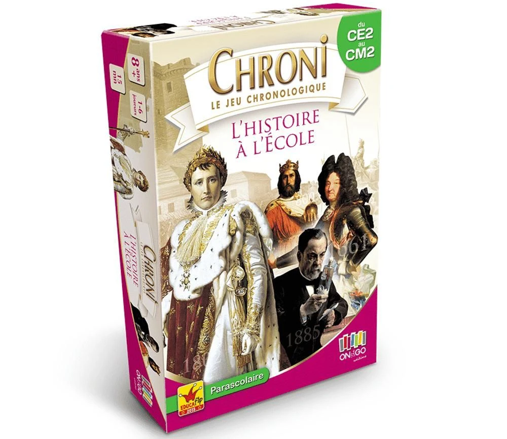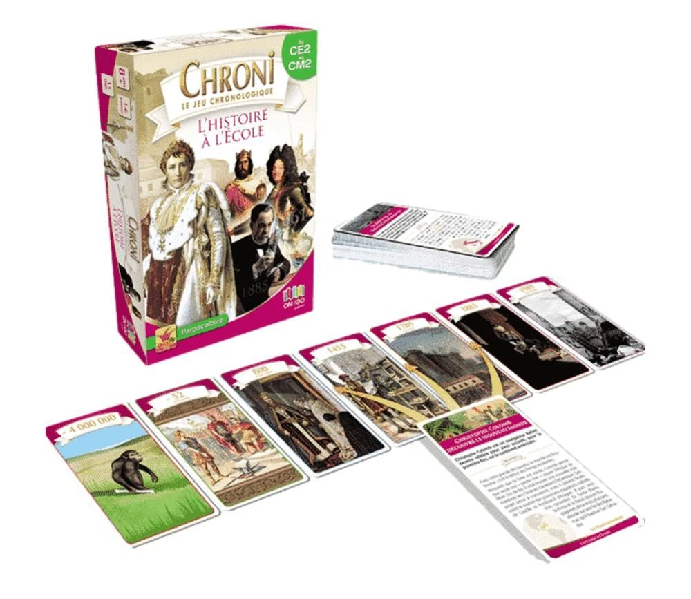 Jeu Chroni L’histoire à l’école. Un jeu idéal pour travailler sa culture générale. Matériel éducatif sur les événements du programme scolaire du CE2 à CM2 en Histoire. Réviser ses connaissances de l’histoire avant d’arriver au collège.