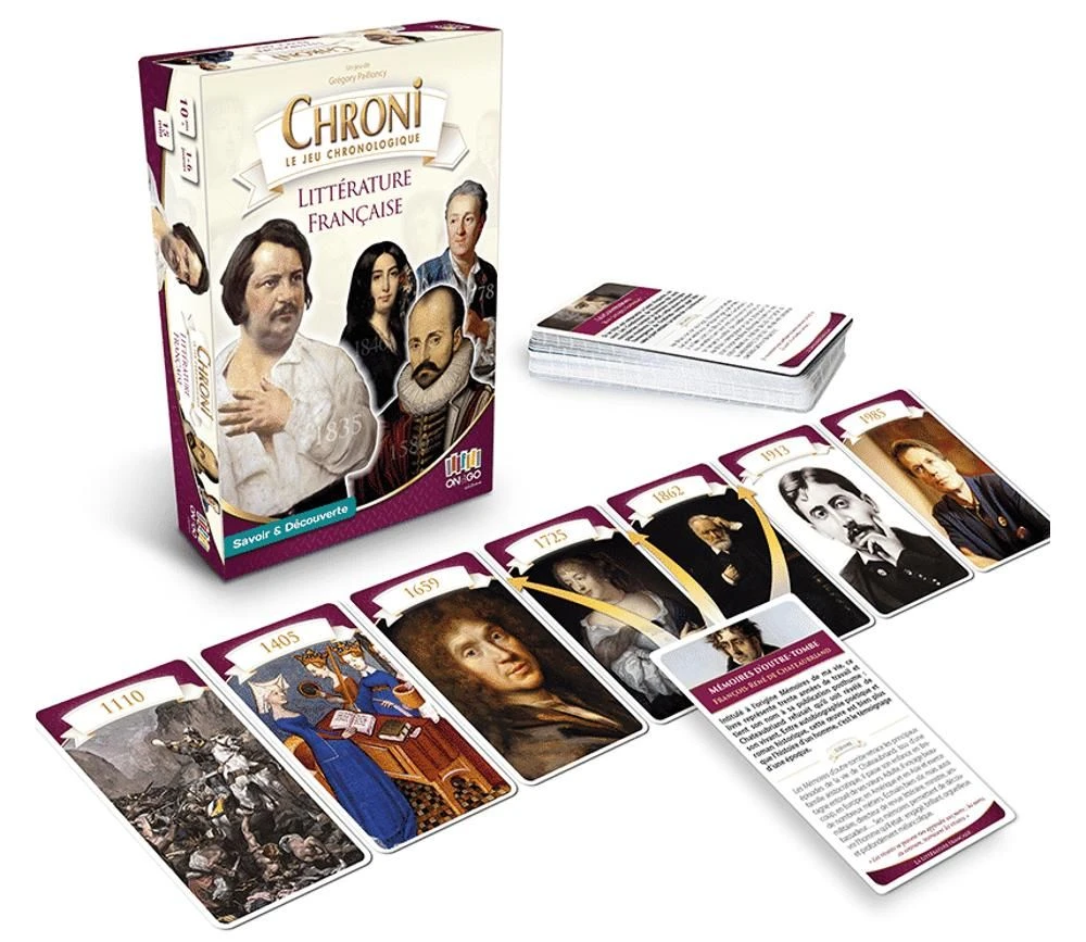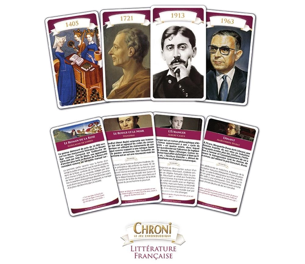 Jeu Chroni L’a littérature française. Un jeu idéal pour travailler sa culture générale. Matériel éducatif sur les oeuvres qui ont marqué l’histoire de France. Ancienne collection des Chronicards.