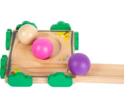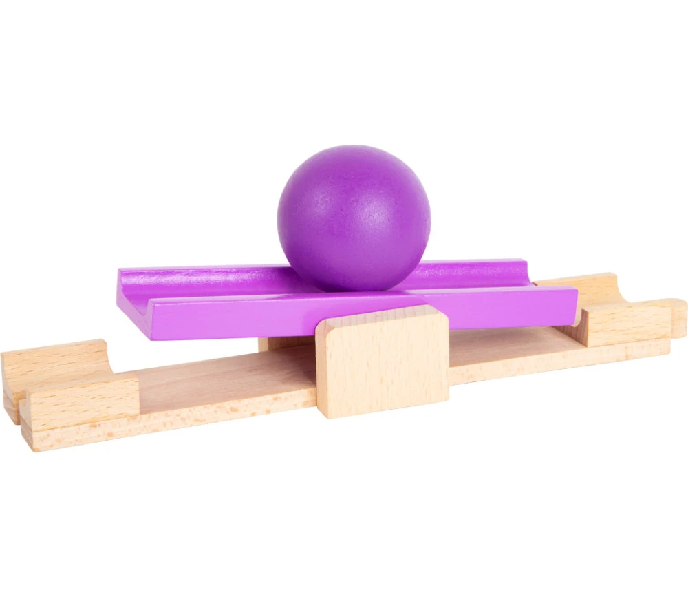 Les enfants plus âgés peuvent également faire rouler des voitures ou des billes plus petites sur les rails en bois.
