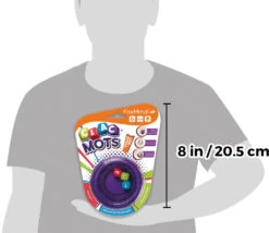 Ce jeu Clac mots comprend : 1 shaker en silicone téléscopique avec 3 dés de couleurs avec les lettres de l’alphabet