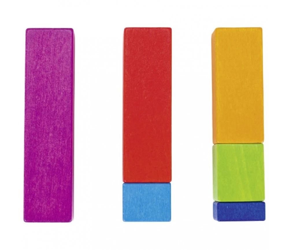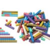 Bûchettes en bois teintées 10 couleurs différentes. Réglettes graduelles pour de nombreux jeux et exercices de calcul.