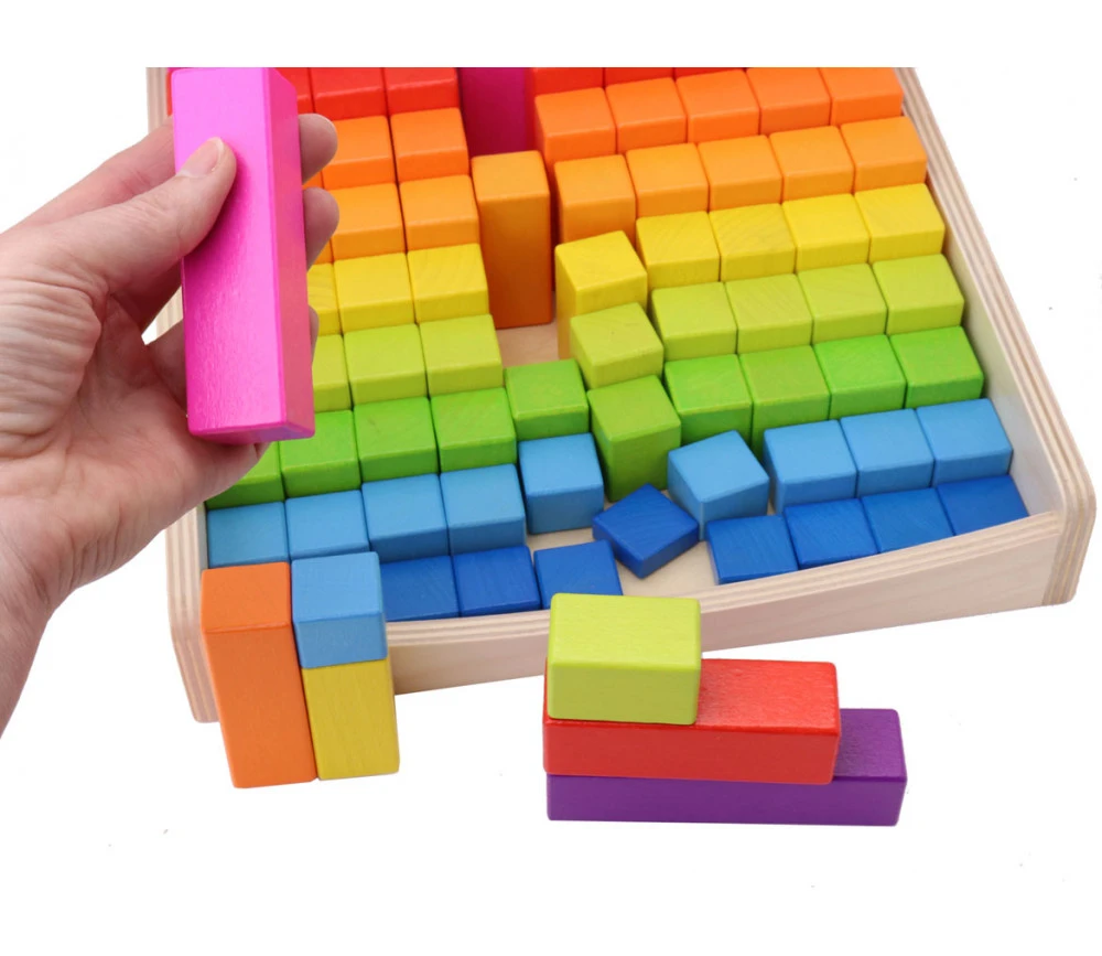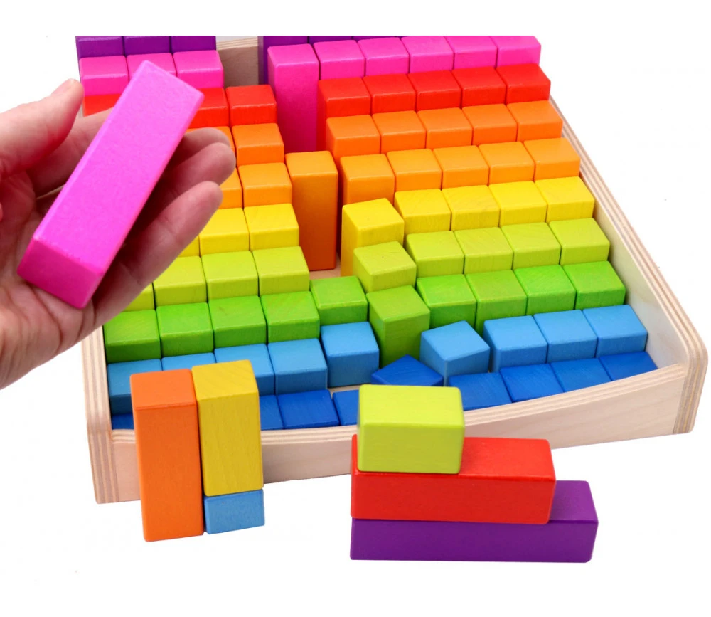 Composition de ce coffret de 100 réglettes cuisenaire en bois :