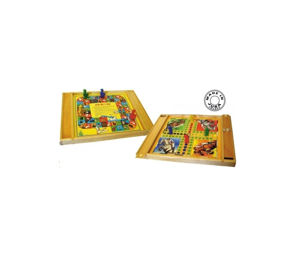 Un grand coffret jeux avec d’un côté le jeu de l’oie et de l’autre le jeu de dada. Tout en bois, ce jeu complet est pratique pour jouer en famille aux grands classiques des jeux de société. Fabrication Française.