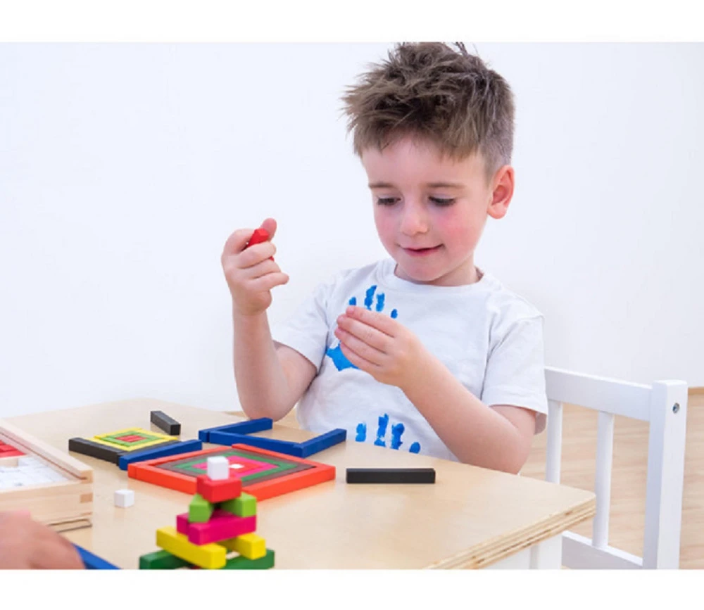 Ce coffret est compatible avec nos éléments de jeux à l’unités : cubes 1 cm, bâtonnets 10 x 20 mm et bâtonnets de 10 x 40 mm