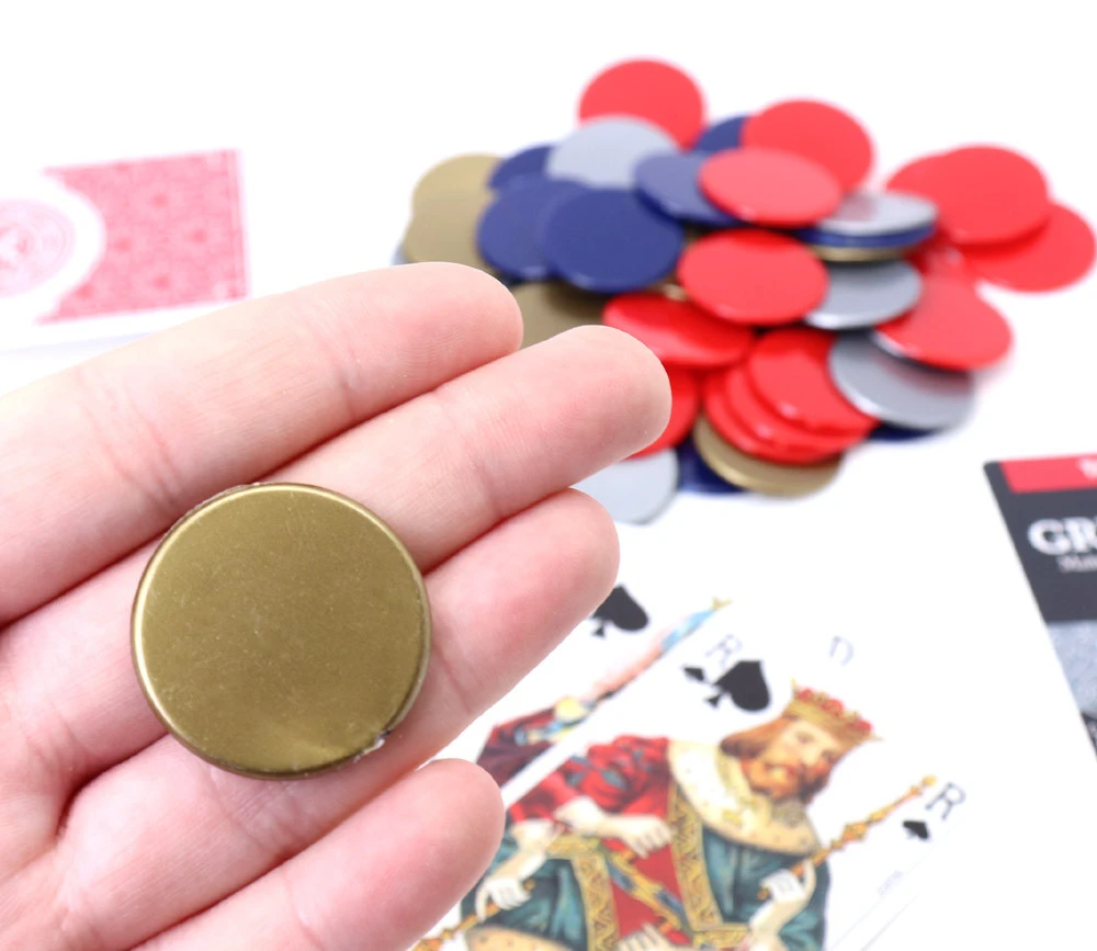 – 15 jetons ronds de 30 mm de diamètre dorés