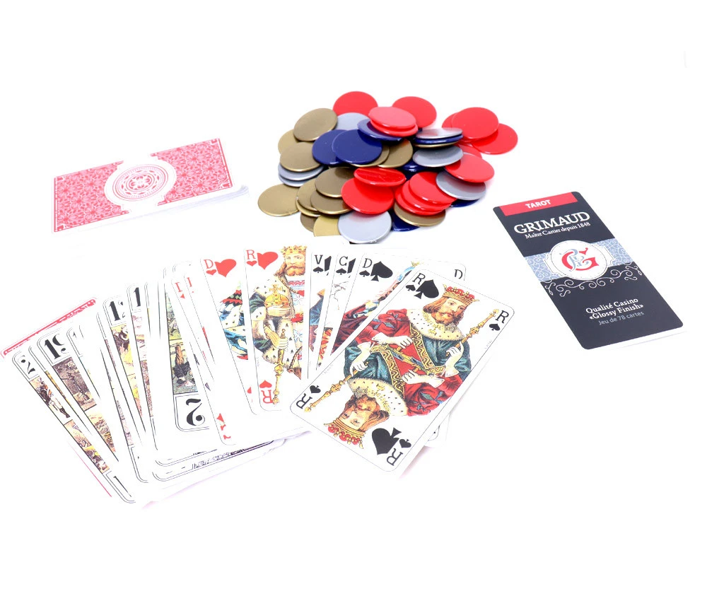 Jeu de tarot avec jeu de 78 cartes tarot de la gamme expert Grimaud, les joueurs expérimentés vont apprécier. (fabrication française)
