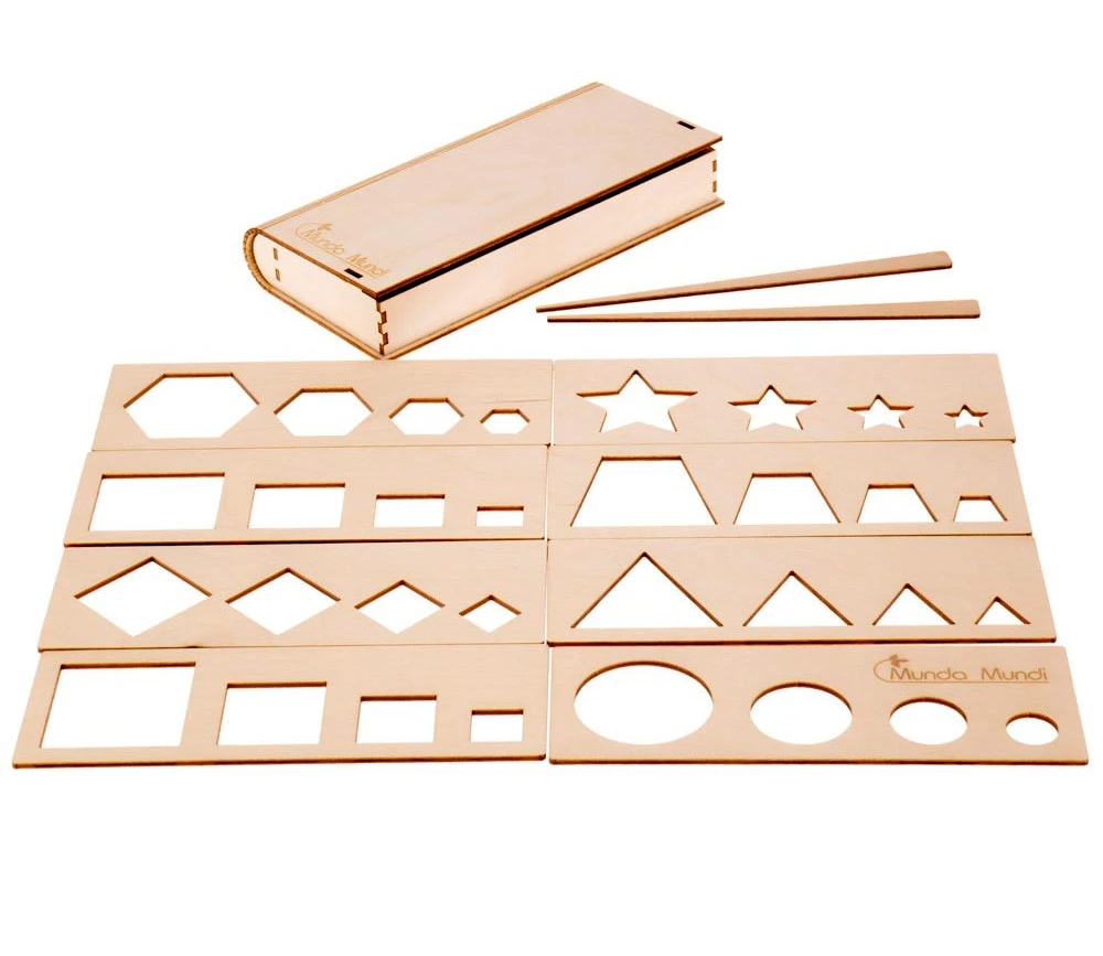 La manipulation de ces pochoirs aide au développement de la pensée logique, mémoire, perception tactile et visuelle et comparaison d’objets.