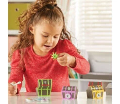 Pour déverrouiller les coffres et découvrir la surprise, les enfants doivent choisir la bonne clé, l’enfoncer correctement dans la serrure et tourner dans le sens des aiguilles d’une montre.