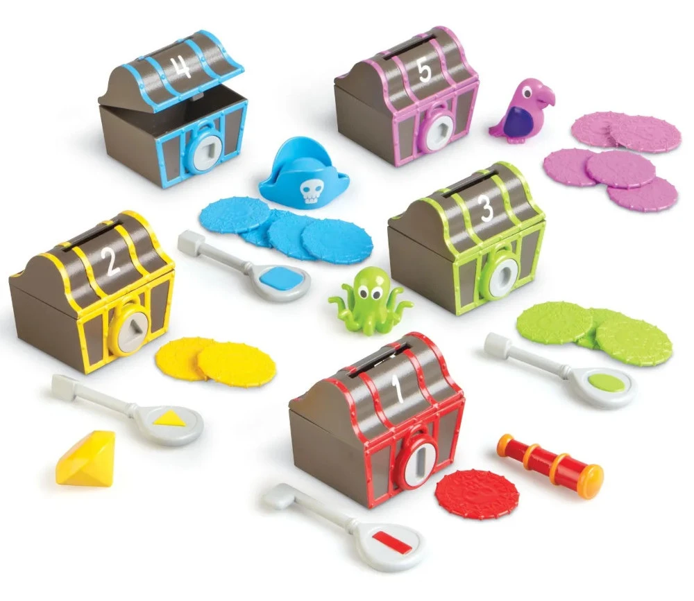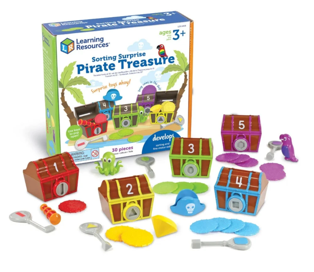 Composition du coffret trésor surprise Pirate : tri et motricité mathématiques :