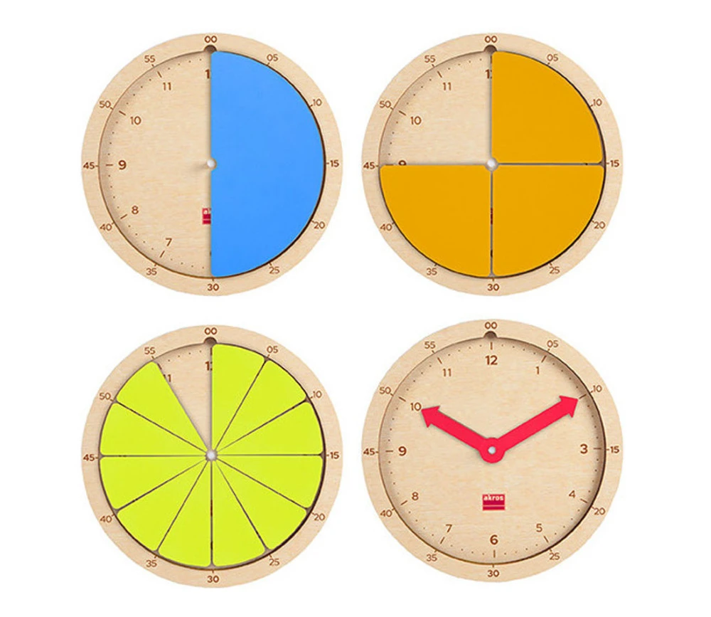 Matériel éducatif tout en bois pour apprendre l’heure en s’amusant.