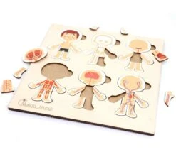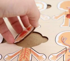 Puzzle en bois découverte des différentes parties du corps humain et de son fonctionnement. (organes, nerfs, squelette, système digestif, muscles)