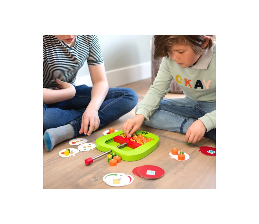 Jeu de la cueillette des pommes de BS Toys comprenant les éléments de jeux suivants :