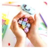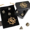 Dés multifaces de 100 côtés couleur noire. Chiffres d’environ 4 mm de hauteur de 1 à 100 gravés en bleu.