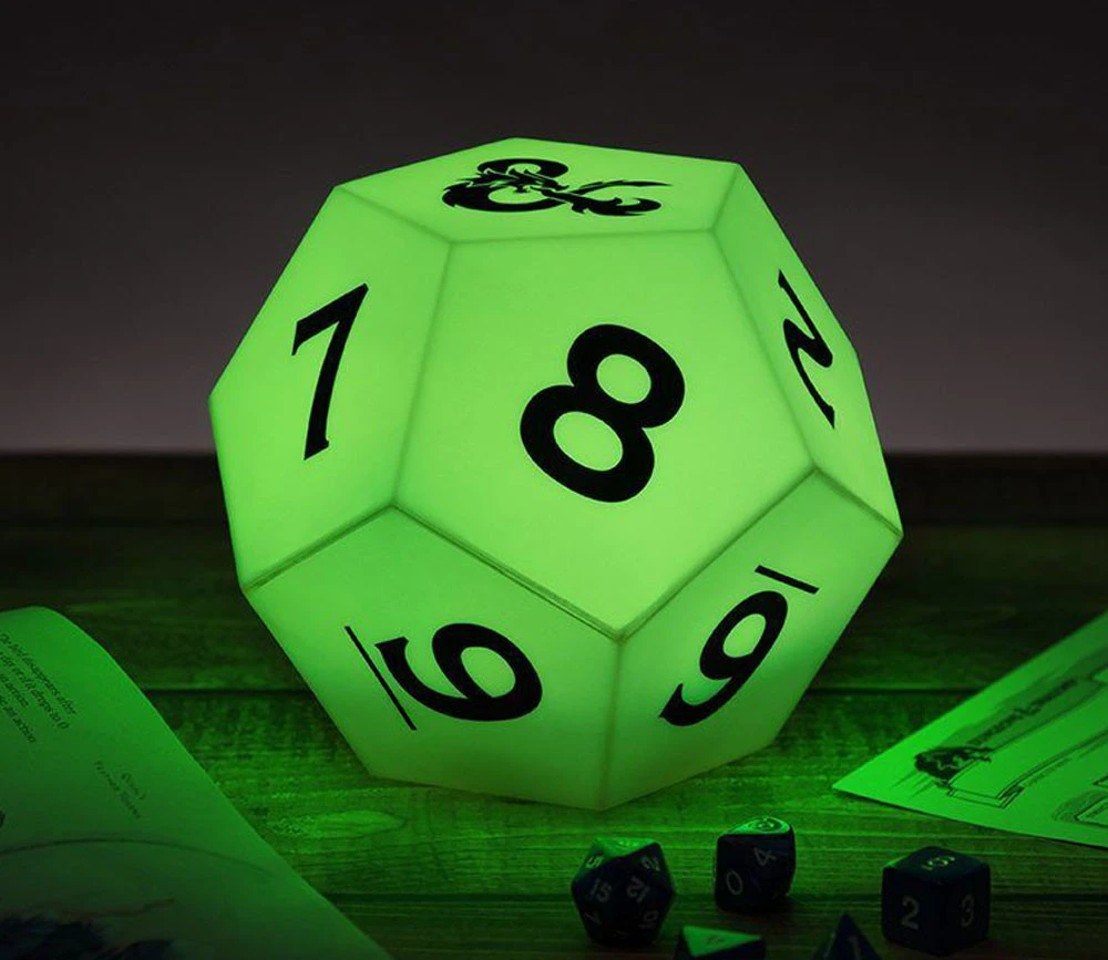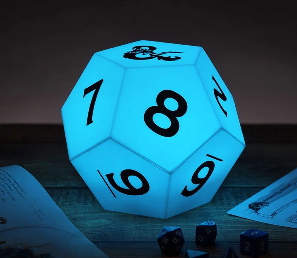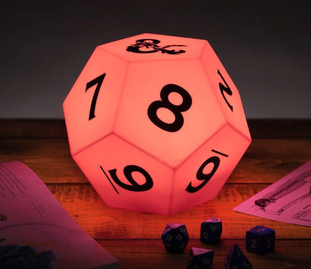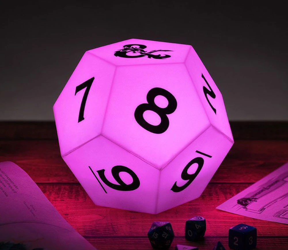 Lumière changeante en forme de dé idéale pour les fans de Donjons et Dragons.