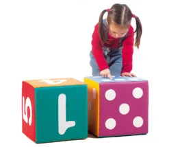 Dé mousse géant 30 x 30 cm 6 faces couleurs recouvertes de PVC avec chiffres de 1 à 6 blancs (numéros pas les points)