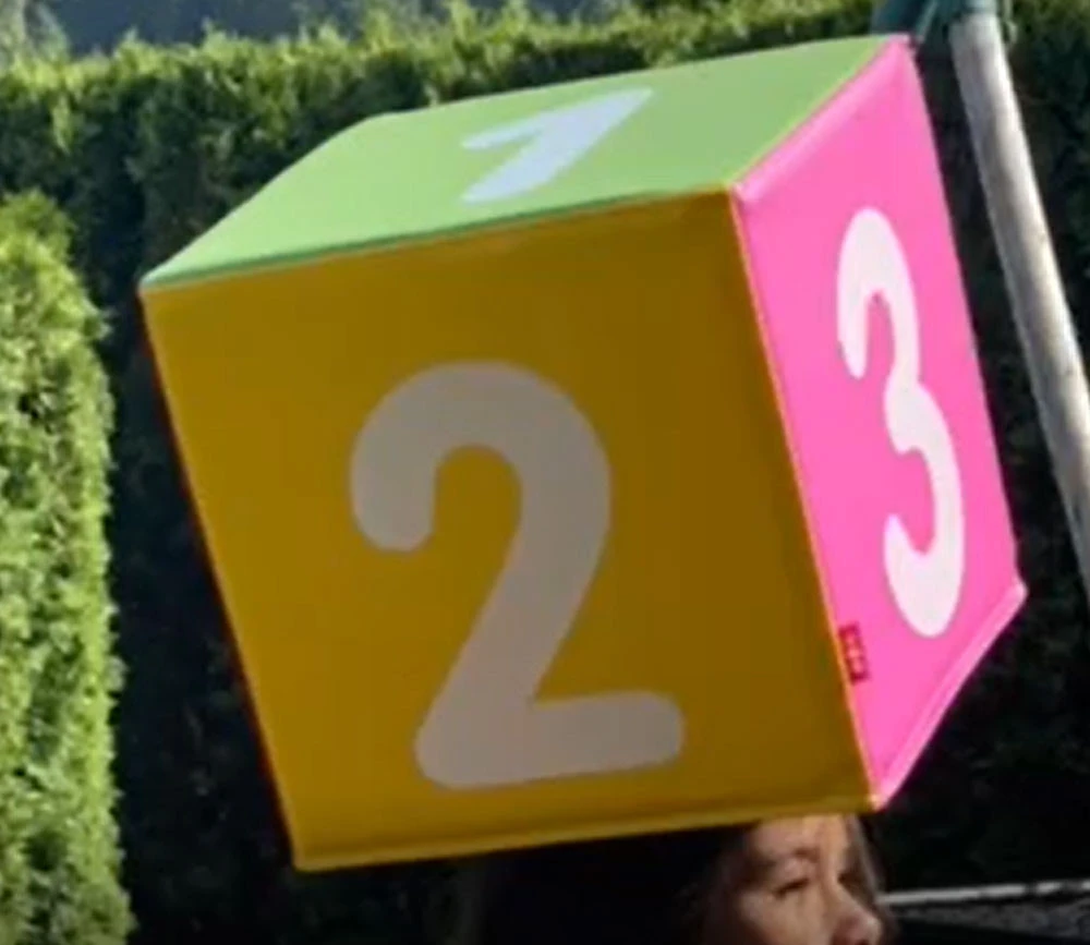 Dé XXL de 30 cm de côté avec chiffres de 1 à 6 avec faces colorées.