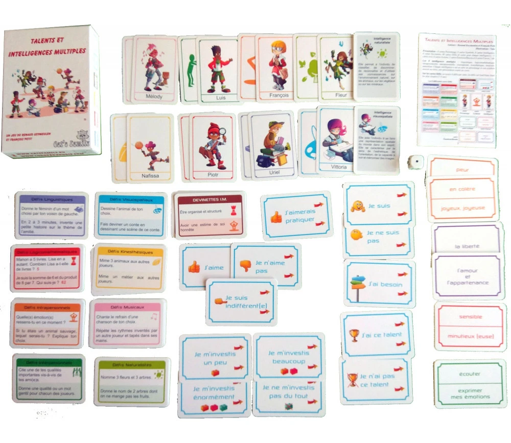 Jeu de découverte et de réflexion sur la personnalité et des goûts des enfants pour certaines matières. Jeu de cartes qui permet de mettre en avant les talents et les intelligences de chacun.