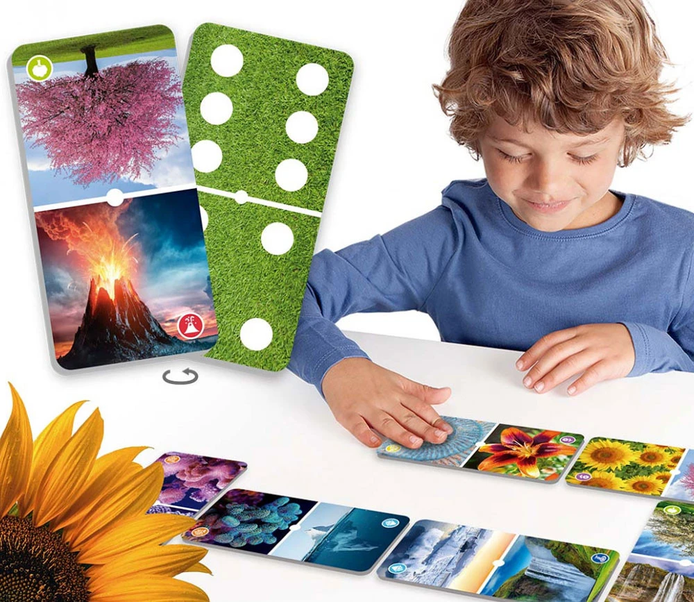 Grand Domino merveilles de la nature avec grandes pièces en carton épais pour jouer aux dominos classiques ou avec les photos.
