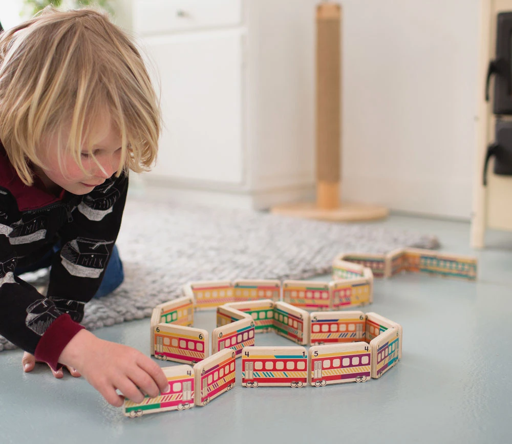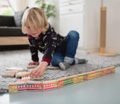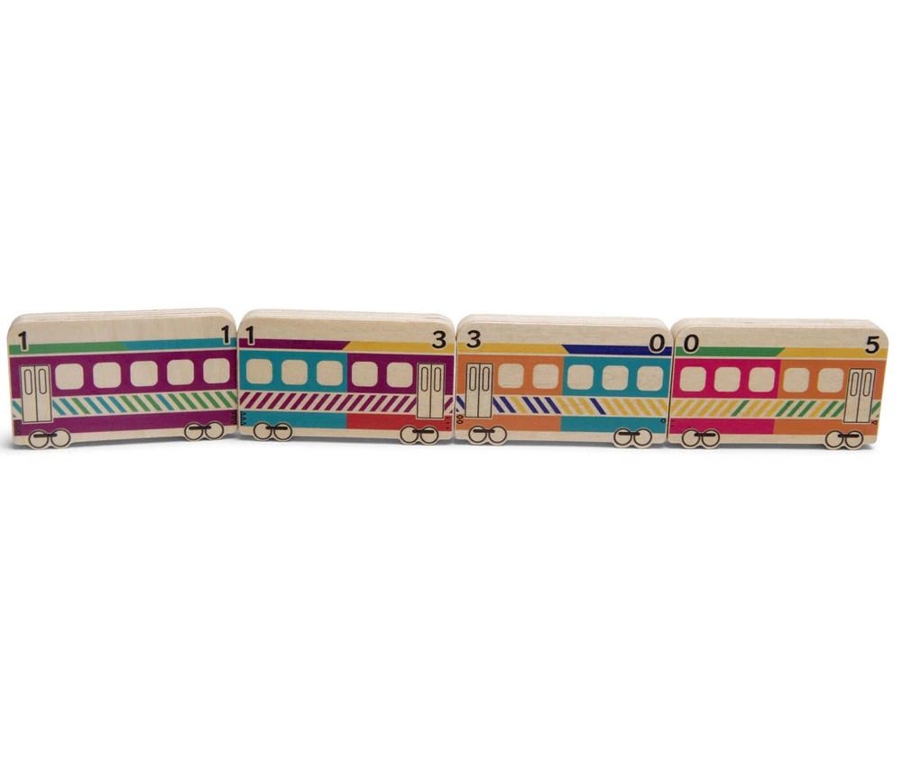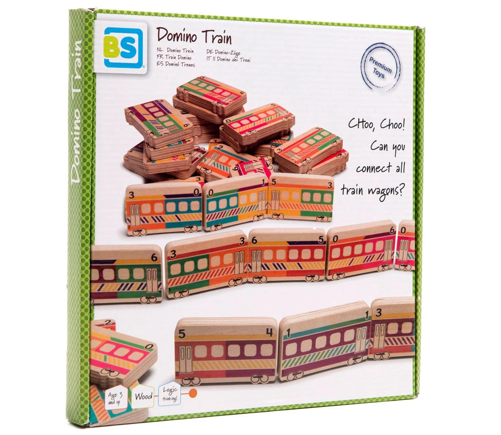 Jeu de domino en bois de grande taille en forme de train pour jouer à l’extérieur et organiser des animations.