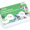 Grandes pièces en bois naturel imprimés en couleur sur les deux faces avec des repérages de couleurs, chiffres et formes.