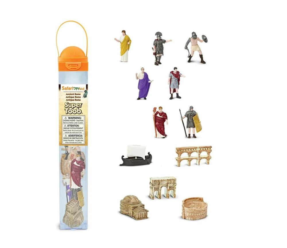 Pour apprentissage et jeux de la Rome Antique. Support idéal pour la découverte et l’apprentissage par la manipulation. Jouets vendus en tube transparent que vous pouvez utiliser pour le rangement après avoir joué. Plongez dans l’antiquité.