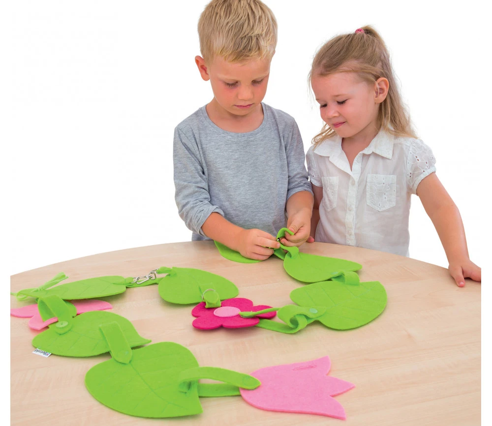 Jeu de manipulation des gestes du quotidien : attacher, relier, ouvrir, serrer… Super pour la coordination main et oeil. Cet exercice permet aussi de développer créativité et concentration.