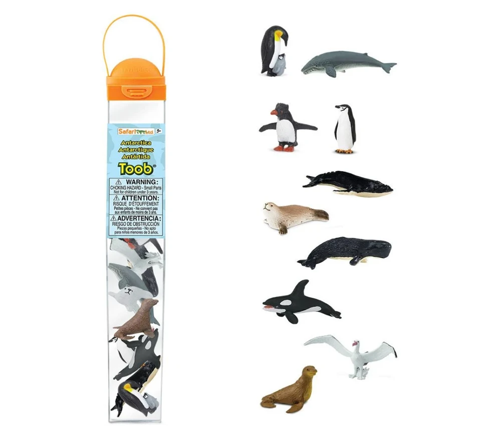 Tube de 10 jouets en plastique pour enfants représentants les animaux du grand froid de l’antarctique :