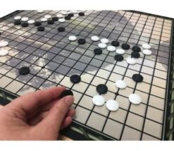Tapis de jeu de go avec partie centrale une impression tramée en fond et quadrillage goban 19 x 19.