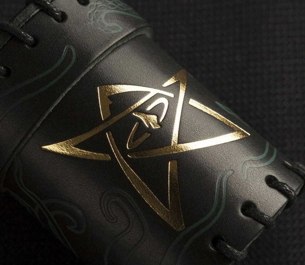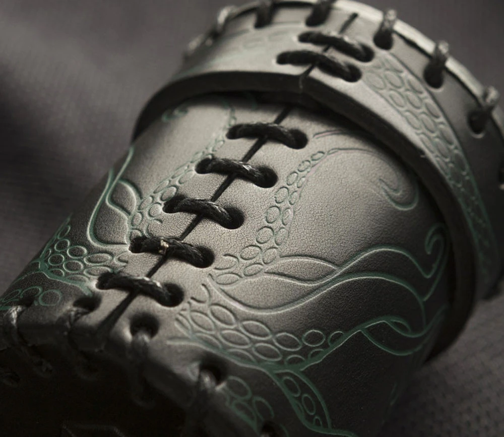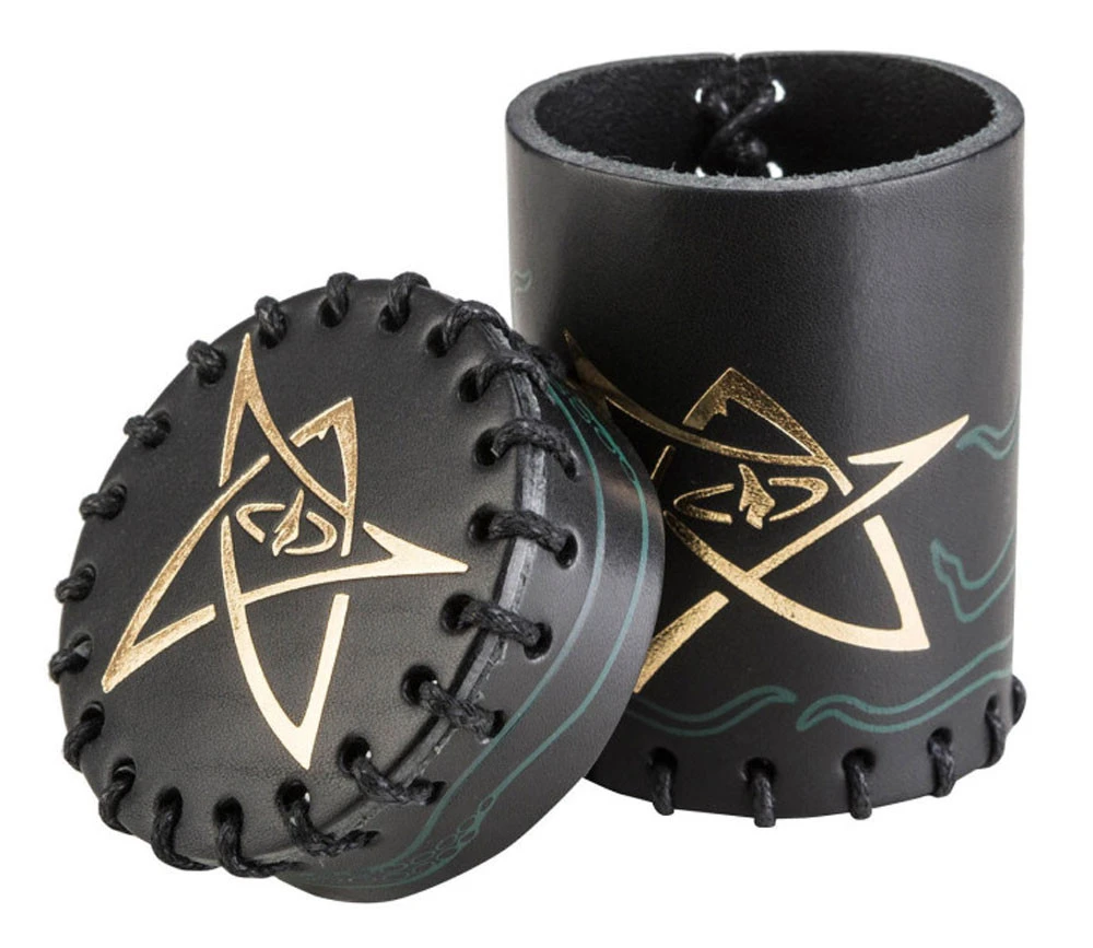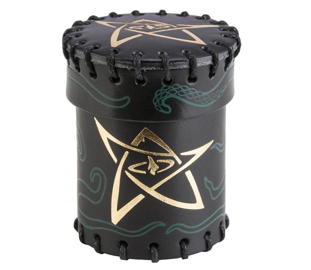 Gobelet pour lancer les dés de jeux. Un joli gobelet cuir noir Call of Cthulhu avec un couvercle sur le pot de lancer. Superbe qualité de pot lancer de dés à jouer.