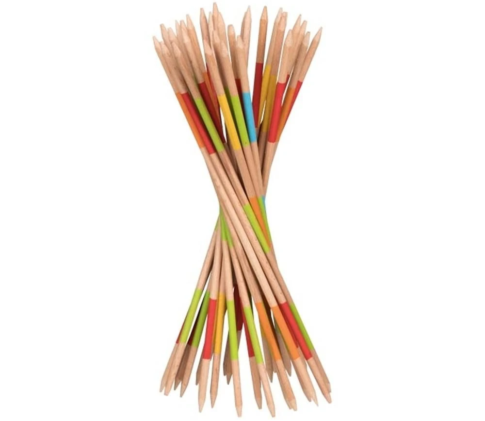 But du jeu de Mikados en bois : retirer un batonnet sans faire bouger les autres. Jeu de précision et concentration.