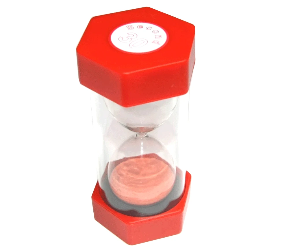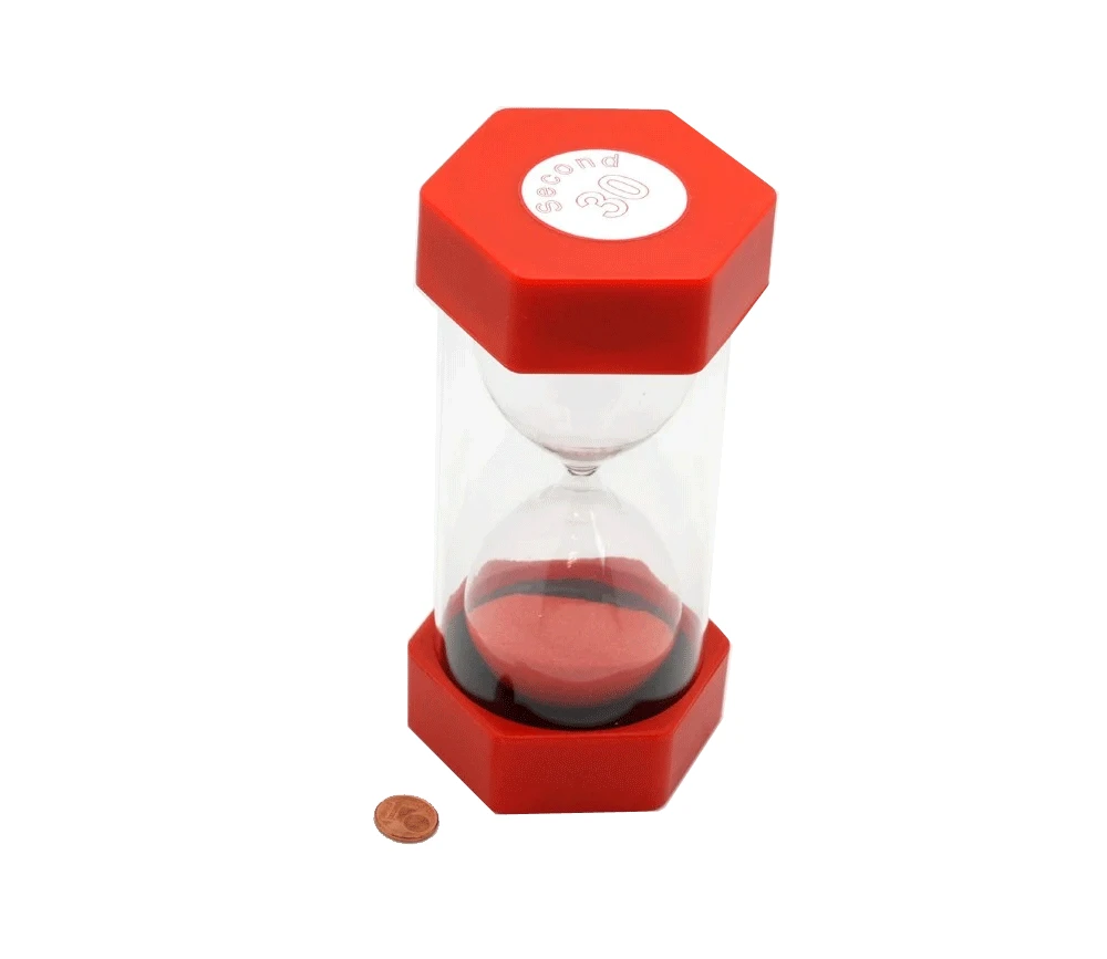 Grand sablier géant 30 secondes pour jeux ou ateliers. Sablier avec du sable coloré qui s’écoule pour limiter le temps de activités ou jeux, apprendre la notion du temps…