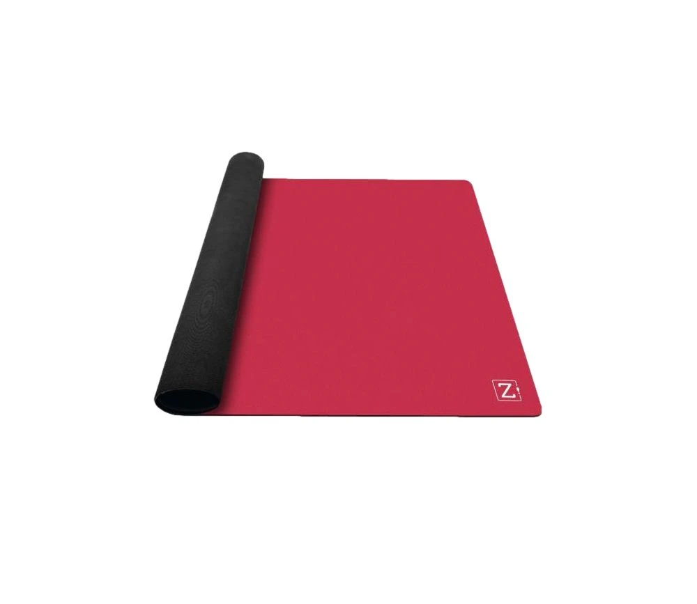 Grand tapis de jeu rouge pour gaming de 148 x 89 cm. Teinte unie avec uniquement le logo en bas à gauche.