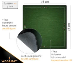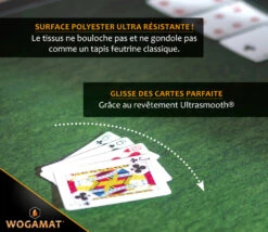Tapis néoprène et revêtement Polyester pour un tenue impeccable sur la table et une glisse parfaite des cartes.