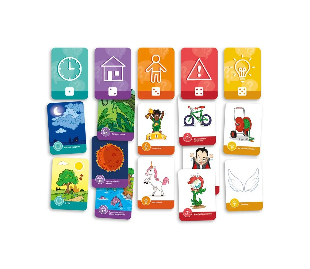 De plus, le fait que les enfants doivent non seulement inventer des récits, mais également utiliser des stratégies pour composer des histoires à partir des cartes qu’ils essaient d’acquérir en compétition avec les autres joueurs, ajoute une dimension ludique et motivante à l’activité.