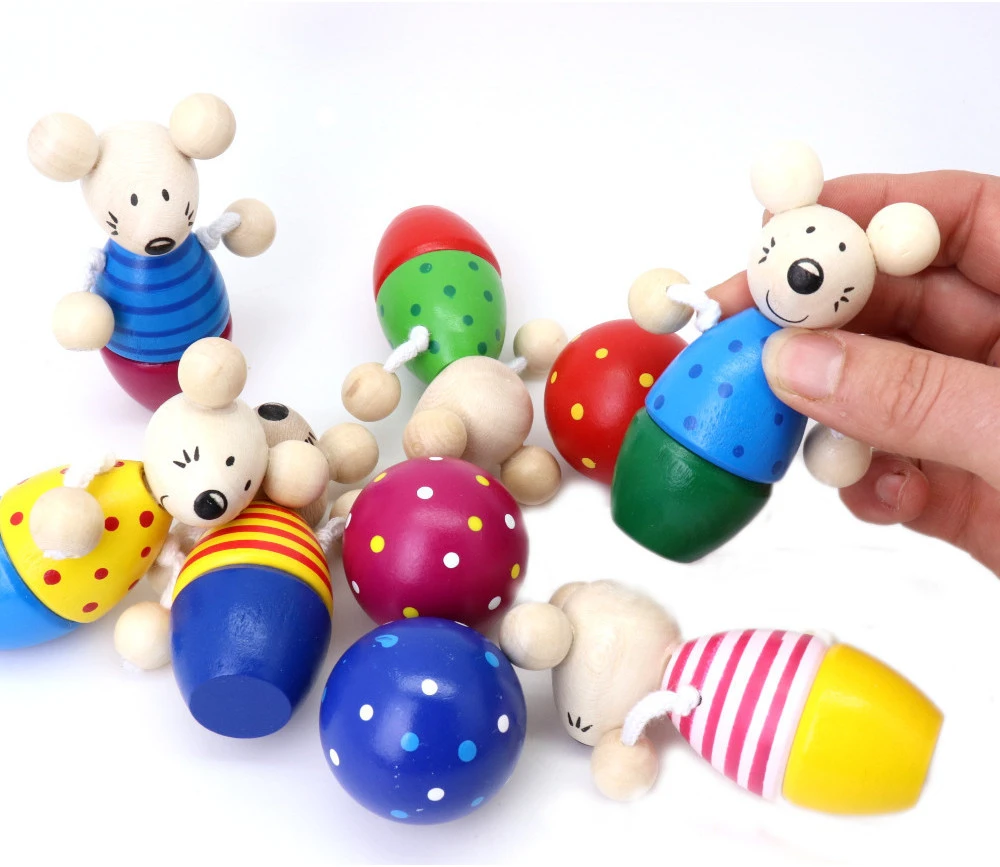 - 6 quilles en bois en forme de souris de 9 cm de hauteur
