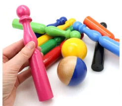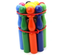 Un très beau jeu de quilles, tout en bois laqué, 9 couleurs éclatantes.