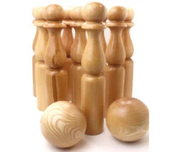Un très beau jeu de quilles, tout en bois verni naturel.