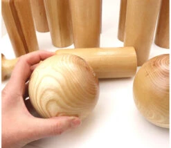 - 9 grosses quilles vernies naturel – Hauteur : 30 cm – diamètre 5.5 cm