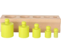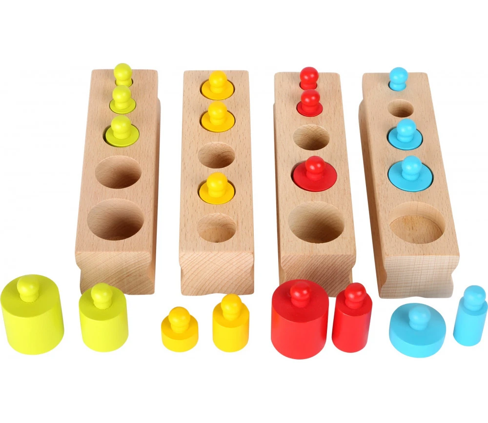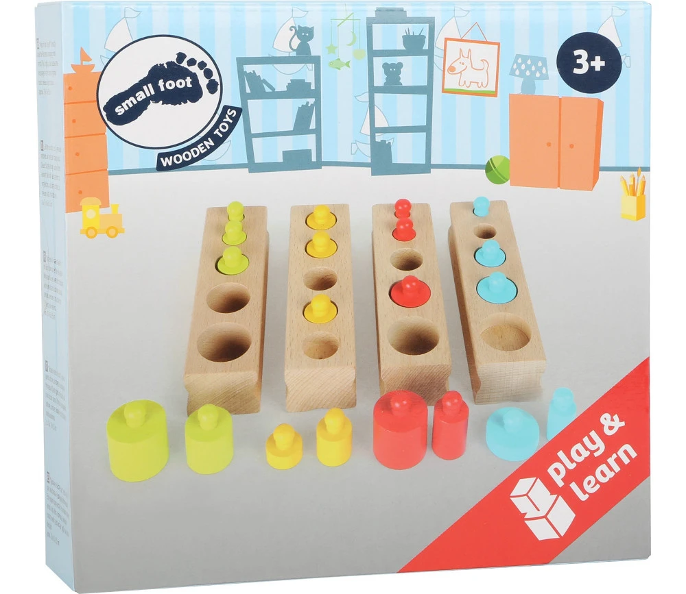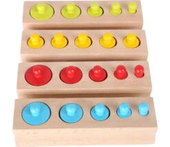 Jeu éducatif avec des cylindres à encastrer. Correspond très bien au programme des enfants en maternelle.