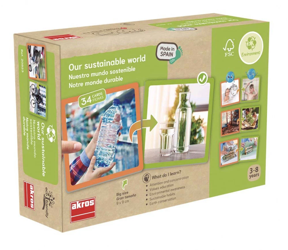 Jeu monde durable : 34 cartes en carton épais, dimensions 9 x 9 cm avec une mallette de transport pour les emmener partout.