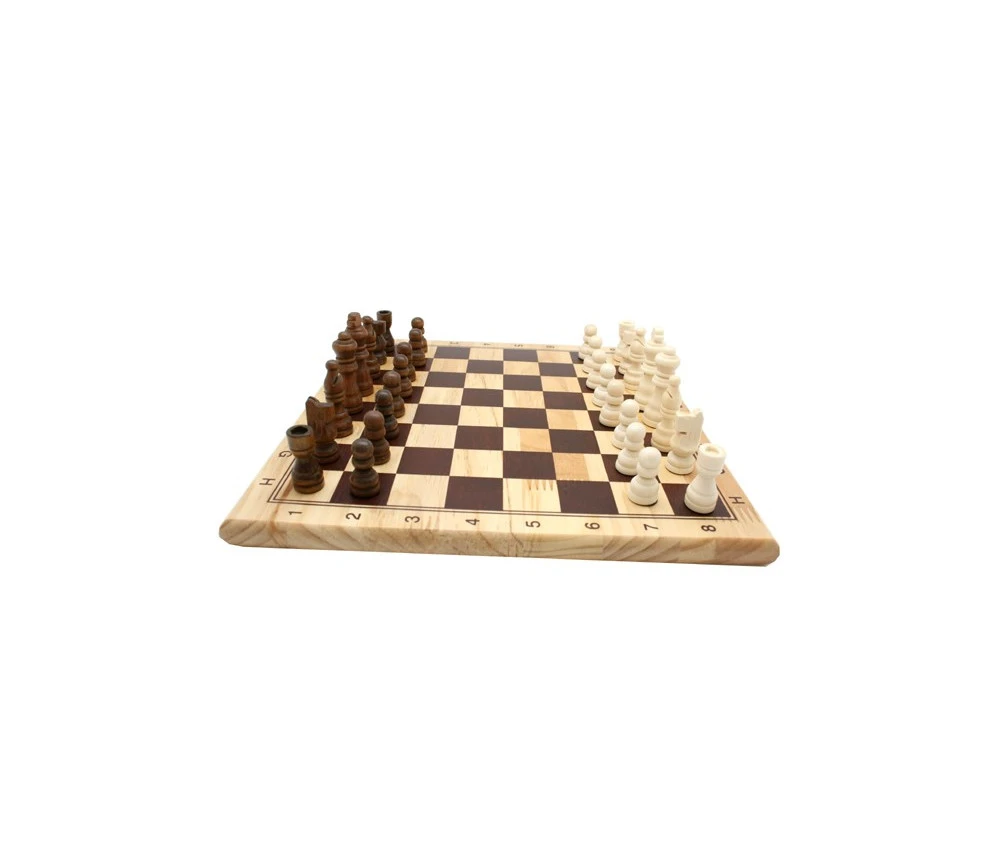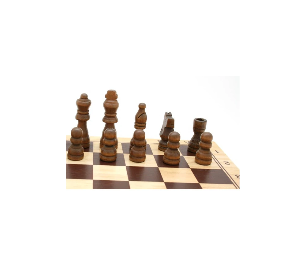jeu d’échec en bois complet : plateau de jeu + Pions jeux échecs en bois couleur bois naturel/ marron.