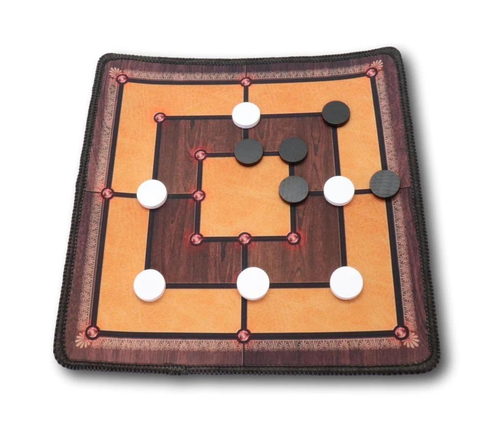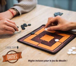– 1 tapis de jeu double face ( dames ou jeu du moulin) de 21 x 21 cm